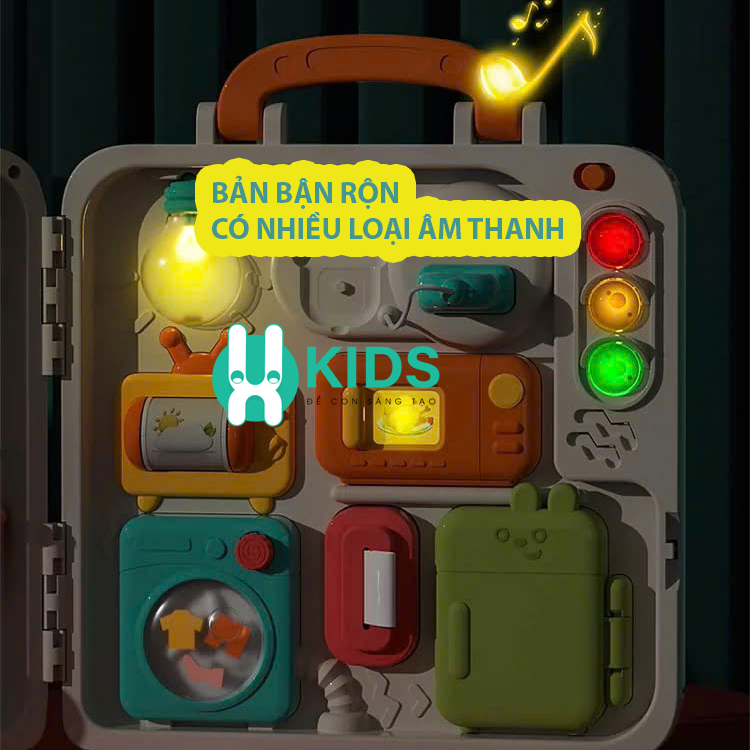 Đồ chơi bảng bận rộn Montessori Busy Board đa năng 3 mặt có đèn nhạc giáo dục sớm phát triển tư duy kĩ năng sống cho bé từ sơ sinh trở lên được thiết kế với nhiều hoạt động thú vị như: