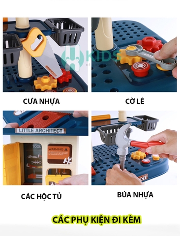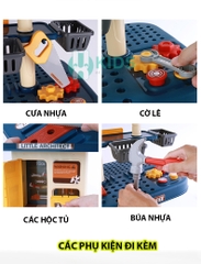 THÔNG TIN CHI TIẾT Đồ chơi lắp ráp ốc vít trẻ em, hộp dụng cụ sửa chữa kĩ sư di động gồm máy khoan điện, búa, cưa, tô vít cho bé: