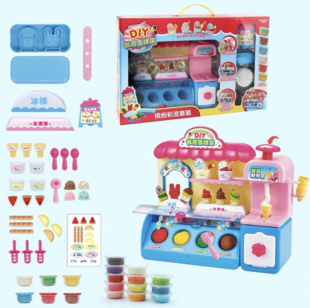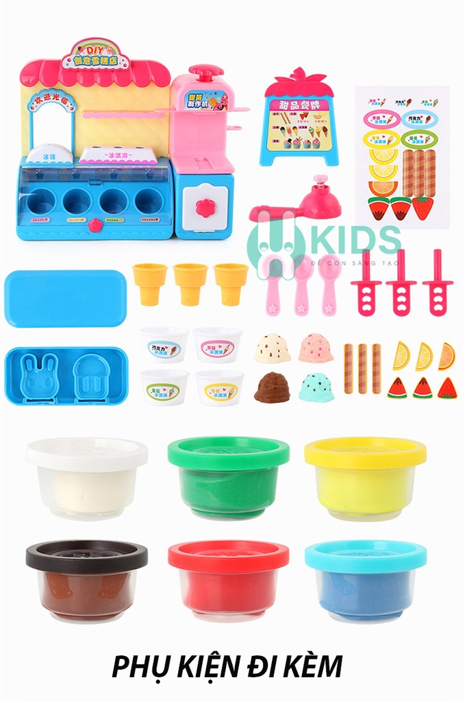 Lợi ích Đồ chơi máy bán kem có đèn với đất nặn nhiều màu có sẵn nhiều phụ kiện làm kem hình dáng dễ thương cho bé mang lại: